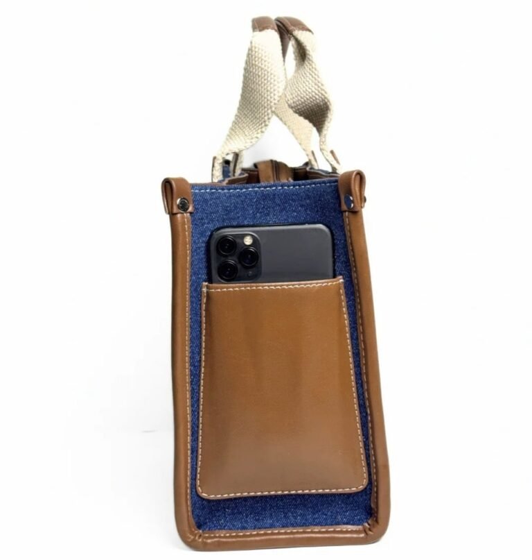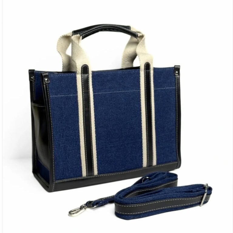 • Material: Premium Denim with Faux Leather Trim
