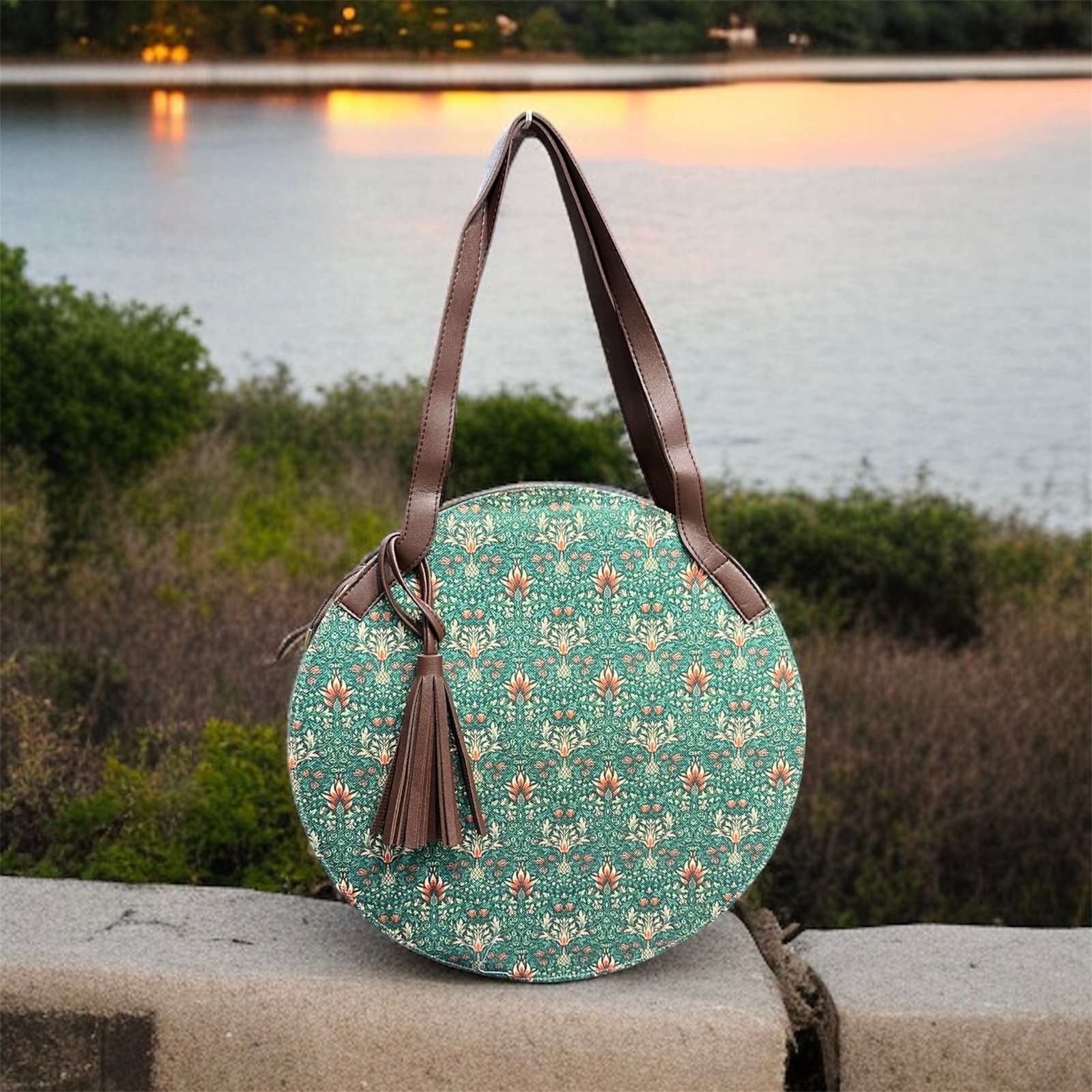 - Outer Material: Stylish jute and printed canvas paired with PU synthetic leather for durability and charm